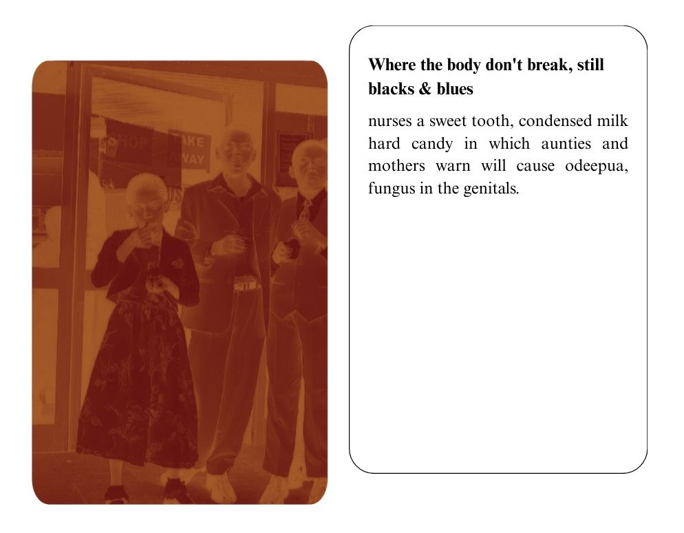 Editor’s note: Claudia Owusu’s piece for On Repetition was designed in the format of a flipbook, which you can experience below by clicking next and previous, or a specific page. For the full effect, you can view it in browser here.